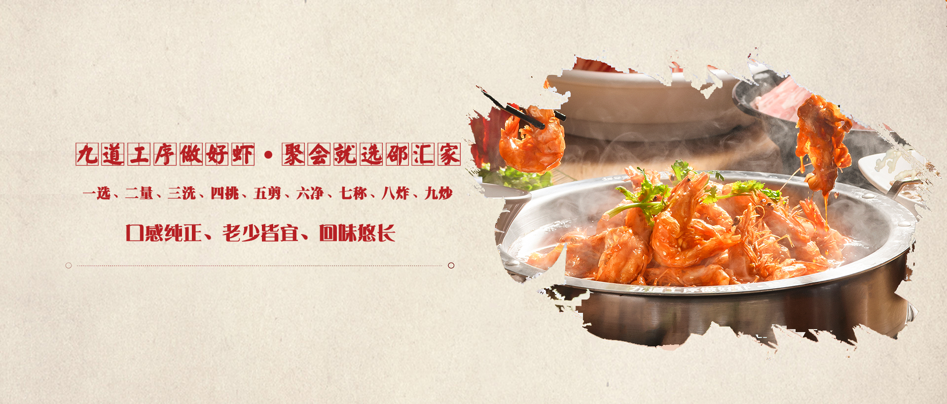 邵匯大蝦擁有強大的后勤保障部門,核心底料由公司中央工廠集中配送,食材精選進口大蝦,搭配秘制底料制作而成,研發出一鍋兩吃的飲食模式(先吃蝦后涮菜,葷素搭配隨心選),打造出綠色健康的飲食新文化。